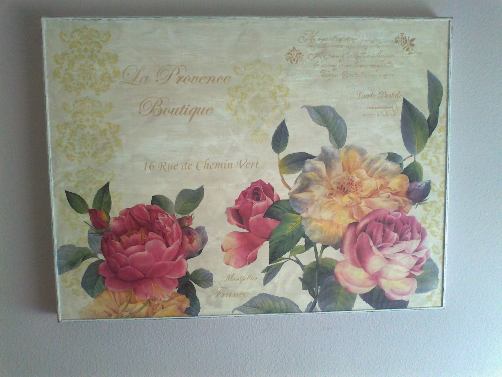 Este es otro cuadro con la mismas técnicas , gesso , stencil , decoupage y decapé , pero con otros tonos y otro papel de arroz .